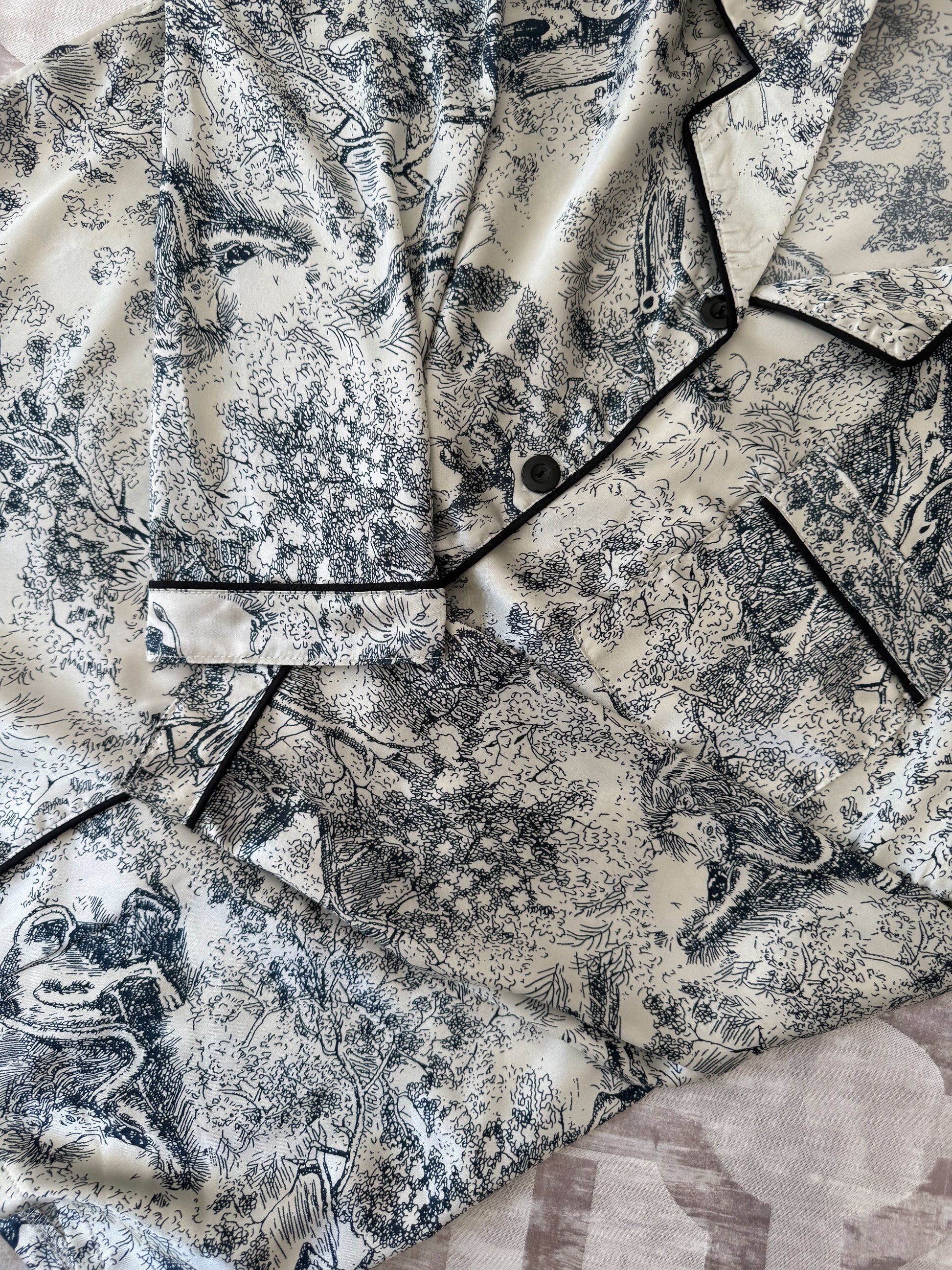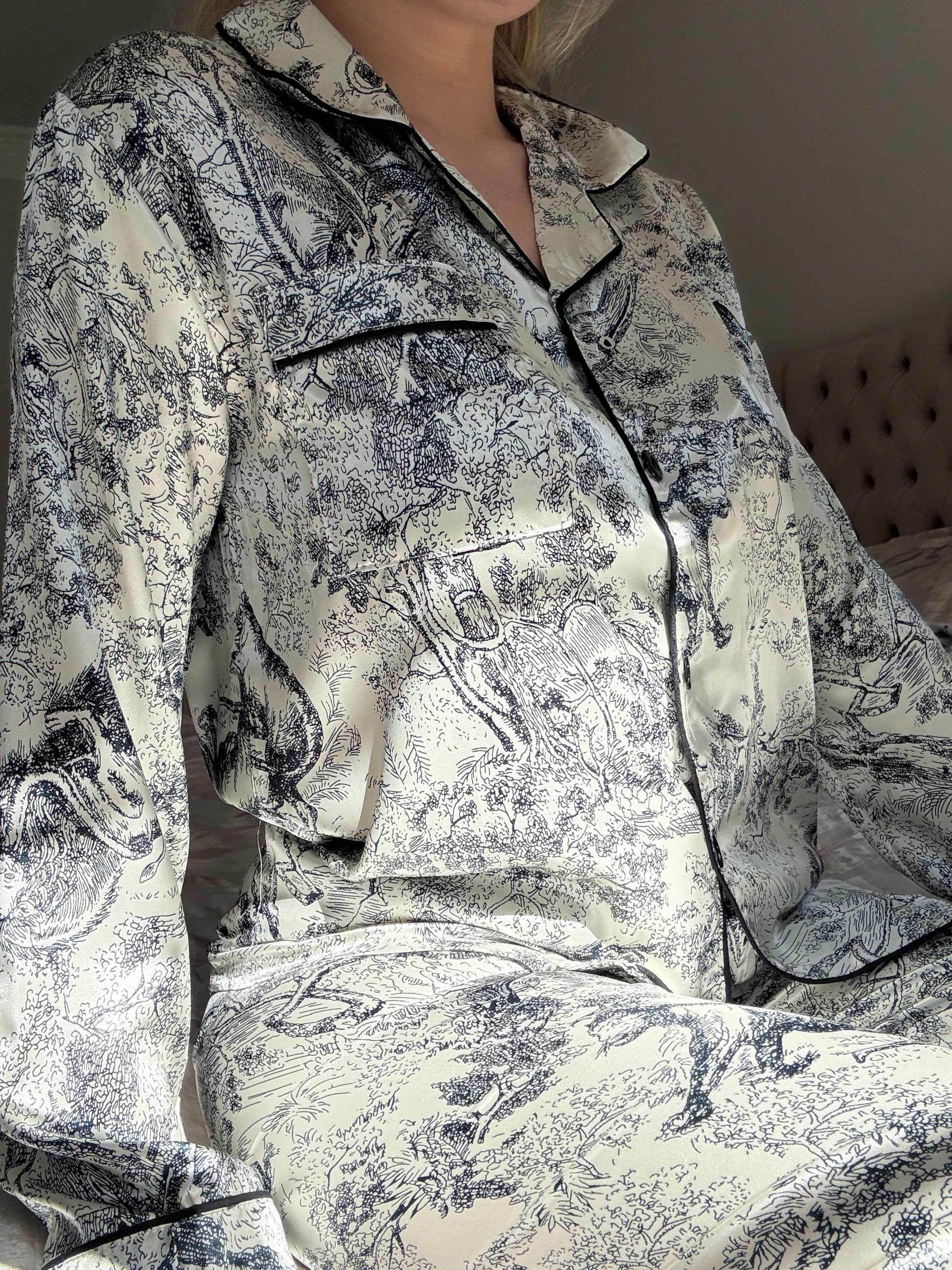 Luxury Silk-Feel Pajama Set – Elegant Toile Print